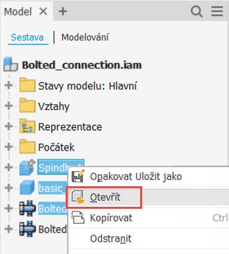 V prohlížeči můžete vybrat více komponent a podsestav a tuto sadu výběru otevřít v samostatných relacích. Pravým tlačítkem myši klikněte na sadu výběru a klikněte na tlačítko Otevřít.