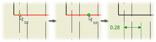 - V grafickém okně klikněte na polovinu nebo průsečík a další čáru, hranu nebo bod.