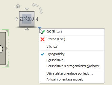 Pomocí nástroje View Cube určete orientaci modelu a typ projekce.