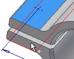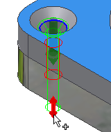 V grafickém okně klikněte na 3D úchyt a upravte vzdálenost středu díry od vybraných lineárních hran. Kliknutím na tlačítko potvrdíte vzdálenost.