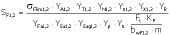 b wF1,2 = min (b 1,2 , b w + 2m) | šířka ozubení pro ohyb |