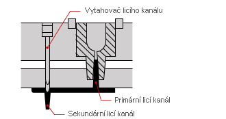 Objímka licího kanálu tvoří primární licí kanál. Sekundární licí kanál se používá ve formě s třemi deskami.