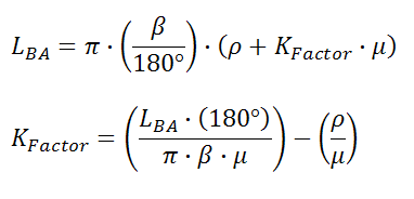 Jakmile je přídavek na ohyb stanoven, kSoučinitel lze odvodit pomocí následujícího vztahu: