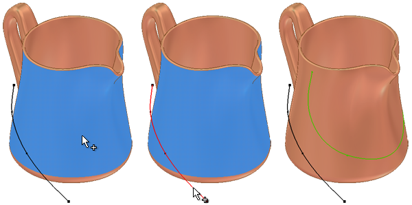 Ve 3D náčrtu lze rovněž promítnout body, křivky, hrany nebo plochy na povrch či těleso. Promítnutá geometrie je asociativní vůči nadřazené geometrii a promítnuté ploše. Chcete-li zalomit geometrii do 3D plochy, použijte příkaz Promítnout na povrch.