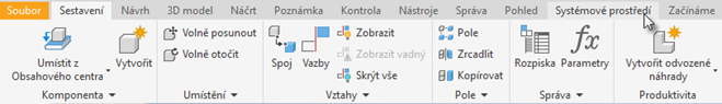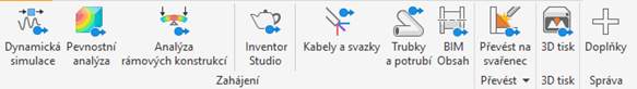 Poznámka: Prostředí Dynamická simulace a Pevnostní analýza jsou k dispozici v produktech Autodesk Simulation a aplikaci Autodesk Inventor Professional. Prostředí Kabely a svazky a Trubky a potrubí jsou k dispozici pouze ve verzi Autodesk Inventor Professional.