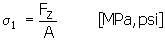 σ 1 , σ 2 | normálové napětí [MPa, psi] |