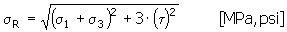σ 1 , σ 3 | normálové napětí [MPa, psi] | |