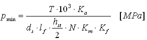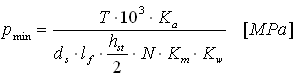 | | p Dmin | dovolený tlak v opěrné ploše hřídele nebo drážky [MPa] |
