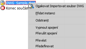 Chcete-li odstranit asociaci mezi importovaným souborem DWG a původním souborem DWG, použijte příkaz Přerušit spojení.