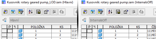 - Vyberte příslušný pohled rozpisky pro tvorbu kusovníků a pozic: