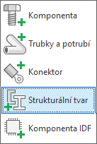 Následující příkazy jsou umístěny na kartě Návrh v prostředí sestavy a svařování. Publikování konstrukčního tvaru je umístěno na kartě Správa v prostředí součásti.