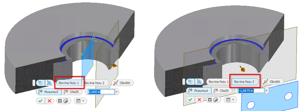 Vyberte rovinu nebo rovinnou plochu jako druhou rovinu řezu.