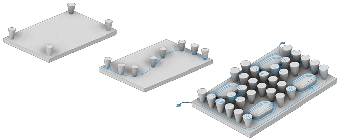 Příkaz Pole řízené náčrtem uspořádá výskyty prvku nebo tělesa na bodech 2D nebo 3D náčrtu. Jeden či více prvků nebo těles bude duplikováno a výsledné výskyty budou uspořádány do pole definovaného body náčrtu.