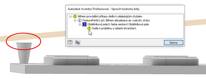 Prvky pole jsou uvnitř hranice. Možnost hranice je dostupná pouze při modelování součásti.