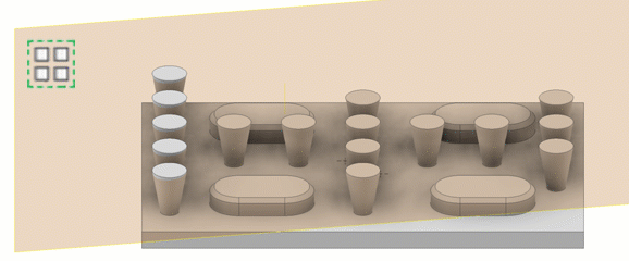 Upravit. Vytvoří potenciálně se lišící kopie vybraných prvků uspořádáním prvků do pole a výpočtem mezí nebo konců jednotlivých výskytů v poli. U polí s velkým počtem výskytů bude výpočet trvat dlouho. Zachová záměr návrhu, protože umožní úpravy výskytů polí na základě mezí prvků nebo podmínek ukončení, jako je prvek, který končí na ploše modelu. Není k dispozici u polí objemových těles součástí v otevřeném nebo povrchovém stavu.