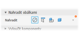 Každá součást – vytvoří obálky pro všechny součásti v sestavě. Nástroje k výběru prvků jsou skryté.Pokud je vybrána některá z možností nahrazení, můžete určit typ:
