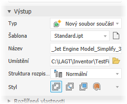 Možnost Náhrada vygeneruje výstup v podobě zjednodušené součásti aplikace Inventor, která vyplní náhradní stav modelu.