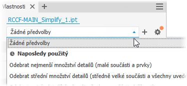 Příkaz Zjednodušit slouží k vytváření i úpravě zjednodušených součástí. Panel vlastností příkazu Zjednodušit se používá i při úpravě starších obalových součástí.