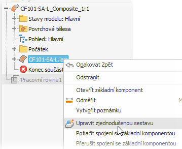 V prohlížeči klikněte pravým tlačítkem a vyberte možnost Upravit zjednodušenou sestavu.