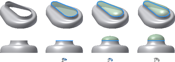 Pomocí příkazu Hraniční záplata vytvoříte z uzavřené hranice hran rovinnou nebo 3D plochu. Použijte na každou hranu podmínky tečnosti (G1) nebo dotyku (G0) a než vytvoříte záplatu, zobrazte náhled výsledku. Jakmile vyberete první uzavřenou smyčku, můžete zahájit výběr pro druhou smyčku.