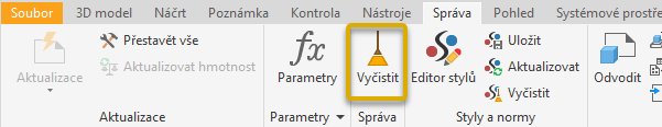 Na konci navrhování vám mohou zůstat pracovní prvky a náčrty, které se již nepoužívají. Tato nadbytečná data lze selektivně odebrat pomocí příkazu Vyčistit nepoužívané.