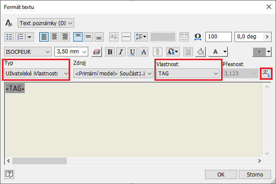 V dialogu Formát textu vyberte v seznamu Typ možnost Uživatelské iVlastnosti.