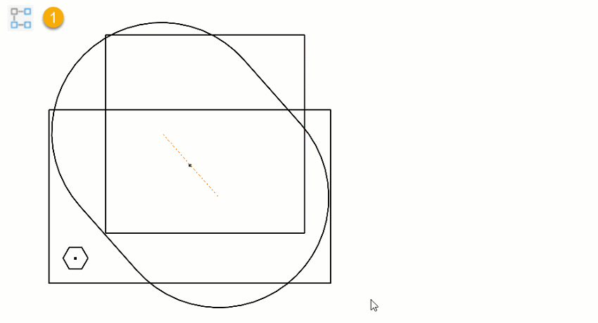 volitelně, pokud v 2D náčrtu zrcadlíte spline, která protíná osu zrcadlení, vytvořte zaškrtnutím políčka Vlastní symetrie jednu spline, která bude symetrická s osou zrcadlení.