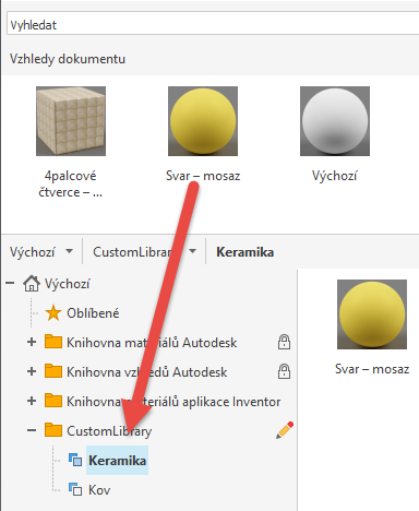 Klikněte na tlačítko Uložit. Knihovna se zobrazí v seznamu knihoven v dolní části Prohlížeče vzhledů.