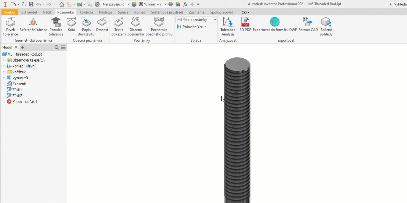 Vytvořte popis vnějšího nebo vnitřního závitu v souboru součásti, sestavy nebo výkresu.