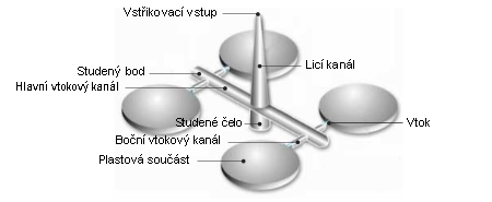 Systém plnění přivádí roztavený plast z trysek stroje do všech dutin formy.