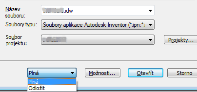 Otevírání výkresů velkých sestav může chvíli trvat kvůli tomu, že jsou u všech komponent nebo součástí kontrolovány aktualizace. Proces aktualizace můžete při otevírání výkresu odložit výběrem možnosti Odložit v dialogu Otevřít.