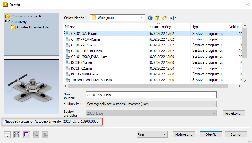 Referenci na novější verzi souboru sestavy můžete vytvořit pomocí příkazu Otevřít nebo Umístit: