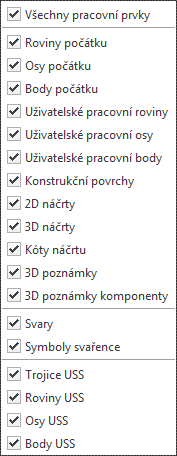 Nastavení viditelnosti pracovních prvků, poznámek a dalších prvků zobrazení