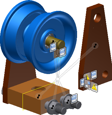 Chcete-li vidět posun komponenty, můžete ji přetáhnou (a všechny komponenty k ní připojené). Přesunutí přetažením zachovává dříve použité vztahy. To znamená, že se vybraná komponenta a spojené součásti posunou společně ve vzájemných pozicích.