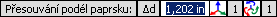 Průhledový displej zajišťuje zpětnou vazbu pro výběry geometrie, jak nad nimi přejíždíte kurzorem, a zobrazuje pole pro zadání přesných hodnot. Možnost Zobrazit stupně volnosti v dialogu Možnosti uzlového uchopení zapíná informace o posuvných a rotačních stupních volnosti (DOF) na průhledovém displeji pro aktivní výběr nebo pohyb kurzoru. Dvě ikony doplněné do průhledového displeje představují posun a otočení. Jejich 2 pole obsahují číselné hodnoty, které udávají přiřazené stupně volnosti v rozsahu od 3 do 0