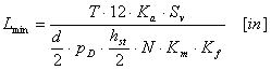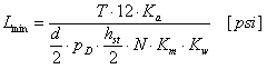 | | p mins | minimální vypočtený tlak ve smyku v hřídeli [psi] |