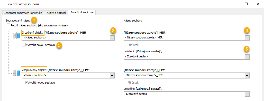 Vytvoření nového souboru sestavy, který obsahuje zrcadlené nebo zkopírované položky: Zaškrtněte políčko Vytvořit novou sestavu.