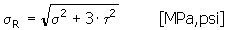 | τ | celkové smykové napětí [MPa, psi] |