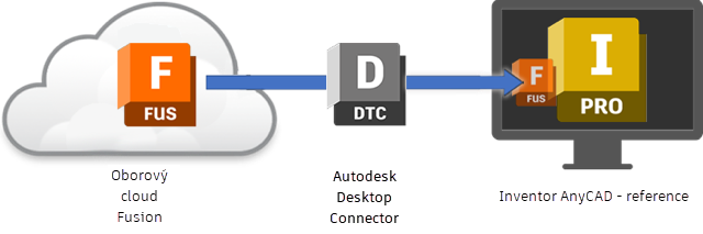 Chcete-li sdílet data mezi aplikací Inventor, desktopovou aplikací a cloudovou platformou Fusion, vyžaduje se několik věcí: