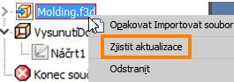 Při otevření dokumentu aplikace Inventor, který obsahuje referenci na soubor .fusiondesign, aplikace Inventor zjistí, zda je k dispozici aktualizace: