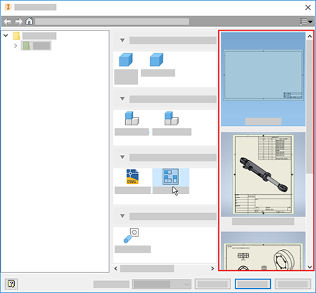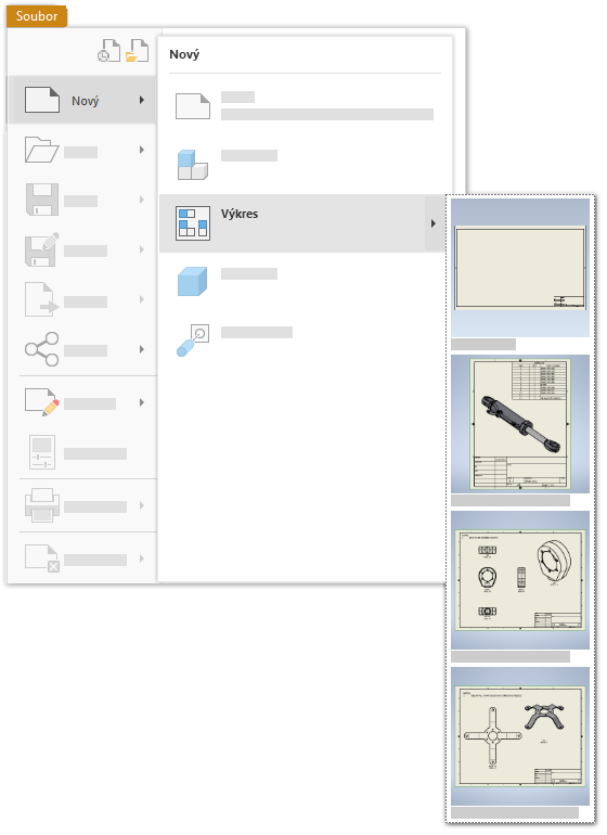 Při vytváření nového souboru výkresu můžete použít formát listu v šabloně. Formáty listů se zobrazují vpravo.