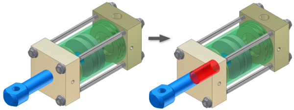 Příkaz Kontrola kolizí vyhledává kolize mezi sadami komponent a mezi komponentami v samostatné sadě. Pokud kolize existuje, aplikace Autodesk Inventor ji zobrazí jako těleso a zobrazí dialog obsahující objem a těžiště jednotlivých kolizí. Kolizi pak lze odstranit úpravou nebo přesunutím komponent.