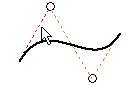 Chcete-li upravit tvar křivky, klikněte pravým tlačítkem na úchyt tečny, a vyberte příkaz Aktivovat úchyt. Poté přetáhněte úchyt tečny a upravte tvar spline.