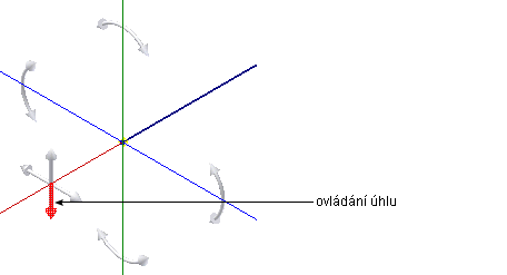 Cesta trasy se změní do nové pozice v daném úhlu. Vyberete-li nesprávný směr, k předchozí úhlové pozici se vrátíte kliknutím na šipku zobrazenou na vybrané ose.