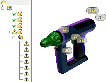 Kliknutím na možnost Analyzovat vybraná tělesa získáte zprávu o množství chyb při této toleranci. Chyby, které jsou pevné, se zvýrazní v grafickém okně.