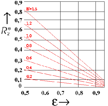závisí na charakteristickém čísle opětovné cirkulace R * 2, které lze nalézt ve schématu podle relativní šířky ložiska a relativní výstřednosti čepu: