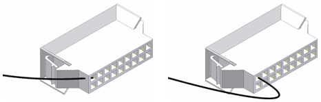 Přirozené zakřivení | Možnost Bez přirozeného zakřivení slouží k vytváření drátů a kabelů, které nejsou tečné ve směru ven přiřazenému k přidruženému konektoru. Dráty a kabely vytvořené bez tečnosti se zobrazí jako přímé čáry vedoucí z bodu do bodu. Možnost S přirozeným zakřivením slouží k vytváření drátů a kabelů, které jsou tečné ve směru ven přiřazenému k přidruženému konektoru. Dráty a kabely vytvořené s tečností se zobrazí v přirozenějším tvaru než křivky, když se dráty a kabely přibližují ke svorkám vodičů. Použití tohoto přirozeného zakřivení činí délku plochých kabelů mnohem realističtější. |