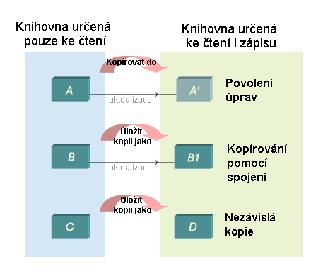 Chcete-li odebrat vazbu na nadřazenou knihovnu pro knihovnu vytvořenou pomocí příkazu Uložit kopii jako, použijte příkaz Přerušit spojení. Rodina se změní na nezávislou rodinu. Přerušenou vazbu nelze obnovit.