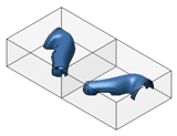 Na kartě Tvárník/dutina klikněte na příkaz Definovat obrobek a potom definujte rozměry obrobku druhé plastové součásti. Tyto dva obrobky stojí vedle sebe