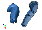 Dvakrát klikněte v prohlížeči Mold Design na položku Housing Complete Right a dokončete návrh dělicí roviny včetně povrchů záplaty, dělicího povrchu, tvárníku, dutiny a vložek.